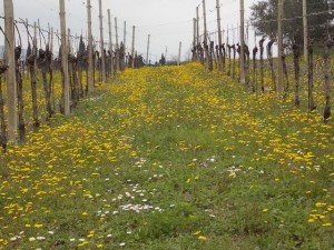 We cover this gray day with a little yellow of flowers in the vineyard Ca Coato.