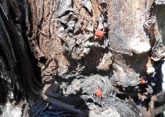 Non vanno confusi con i piccoli ragni rossi deleteri per la vite. Si chiamano Allothrombium fuliginosum e sono ottimi predatori di insetti dannosi per la vite. Era da tanto tempo che non li vedevo ma siccome da qualche anno pratichiamo la confusione sessuale e non usiamo più diserbanti chimici, si è ricreato a Ca’ Coato un ambiente adatto alla crescita di questi insetti fitoseidi che sono antagonisti naturali dei fitofagi dannosi per le piante.