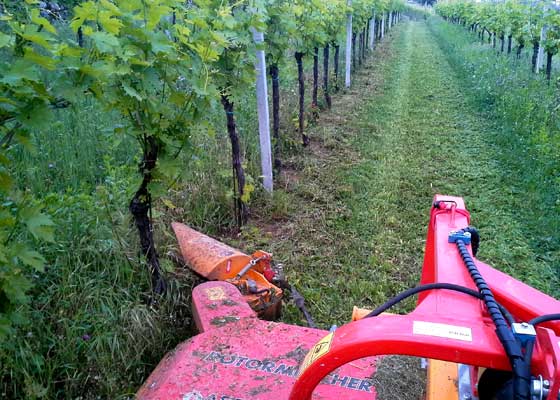 Sì, perché da Aprile in poi siamo impegnati nella pulizia dei nostri vigneti che realizziamo senza l’impiego di alcun diserbante chimico, preferendo lo sfalcio meccanico lungo i filari e tra le file e la spollonatura manuale. Questo comporta molte ore di lavoro però ci garantisce di preservare l’ecosistema presente nei nostri vigneti.