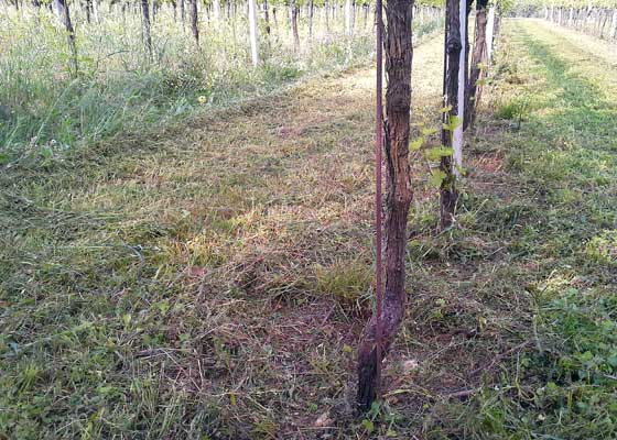 Sfalcio meccanico e spollonatura manuale in uno dei nostri vigneti.